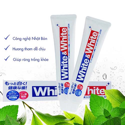 White & White còn được mệnh danh là kem đánh răng siêu trắng, dành cho nướu nhạy cảm, có tác dụng làm sạch răng, phòng ngừa sâu răng, giảm viêm nướu, giảm sự hình thành vôi răng, giúp ngăn ngừa các mảng bám, vết ố vàng do acid trong thực phẩm, rượu bia, thuốc lá trong quá trình ăn uống hàng ngày, giảm nhạy cảm răng, giữ cho hơi thở thơm mát.