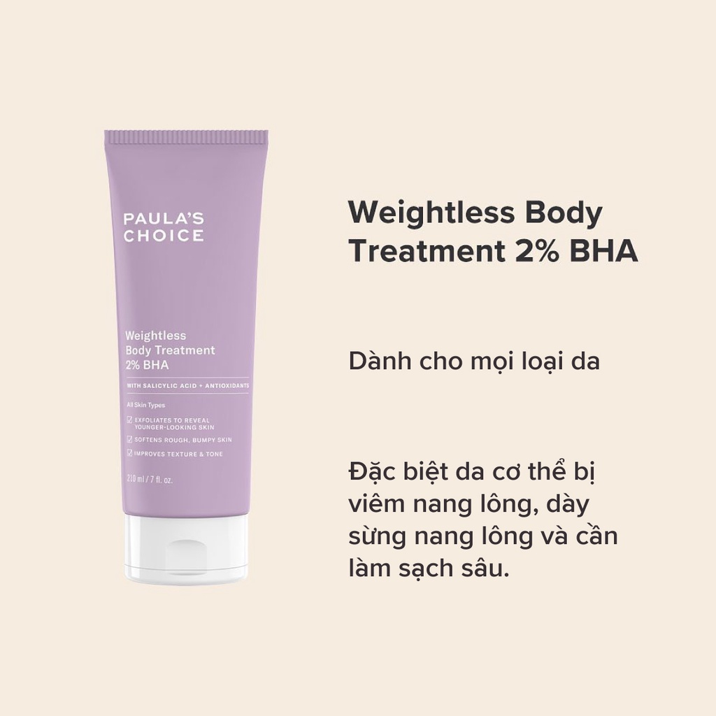 Kem Dưỡng Thể Paula's Choice Weightless Body Treatment 2% BHA Giảm Viêm Lỗ Chân Lông 210ml