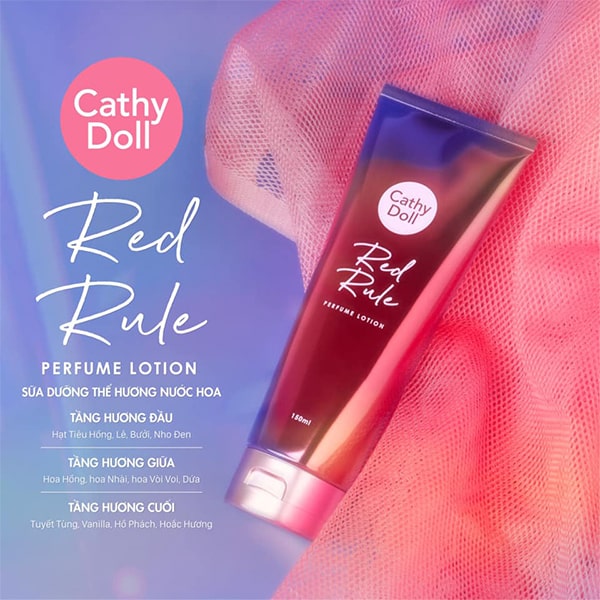 • Red Rule Perfume Lotion – Sang trọng quý phái: Dưỡng thể hương trái cây tươi mát, được kết hợp giữa mật hoa cây nho dại, sự tươi mát của trái Lê, hương nồng nàn từ hạt Tiêu Hồng, hòa quyện hương thơm nhẹ nhàng, tươi mát của hoa Hồng, cùng hương thơm ngọt dịu, thư thái của hoa Vòi Voi, hương thơm ngọt ngào, quyến rũ của hoa Nhài Trắng, kết hợp tất cả trong một mùi hương vừa tinh tế, sang chảnh, vừa ngọt ngào, quyến rũ.