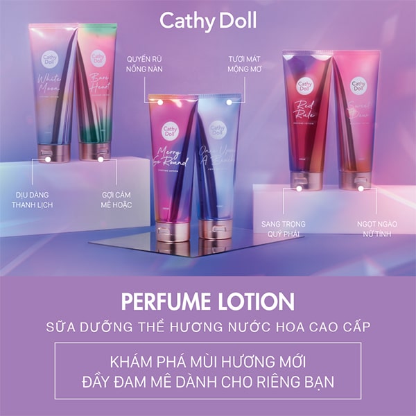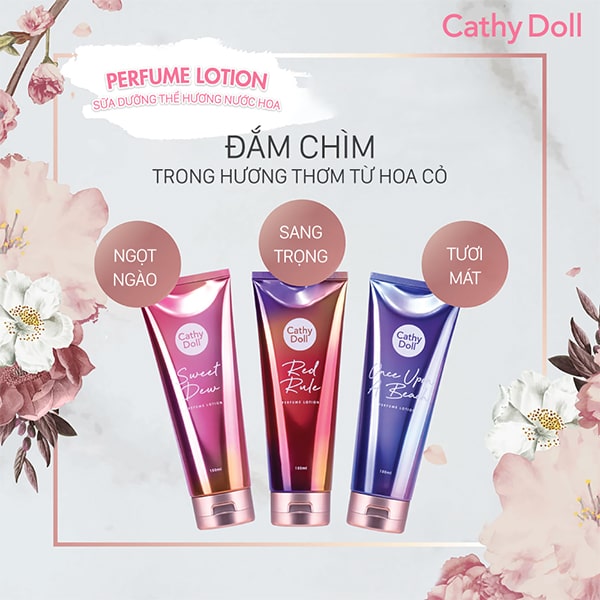 Sữa dưỡng thể hương nước hoa Cathy Doll Perfume Lotion 150ml giúp cung cấp độ ẩm và các dưỡng chất, giúp mang đến làn da mềm mại, mịn màng và tươi sáng, lưu hương suốt cả ngày.
