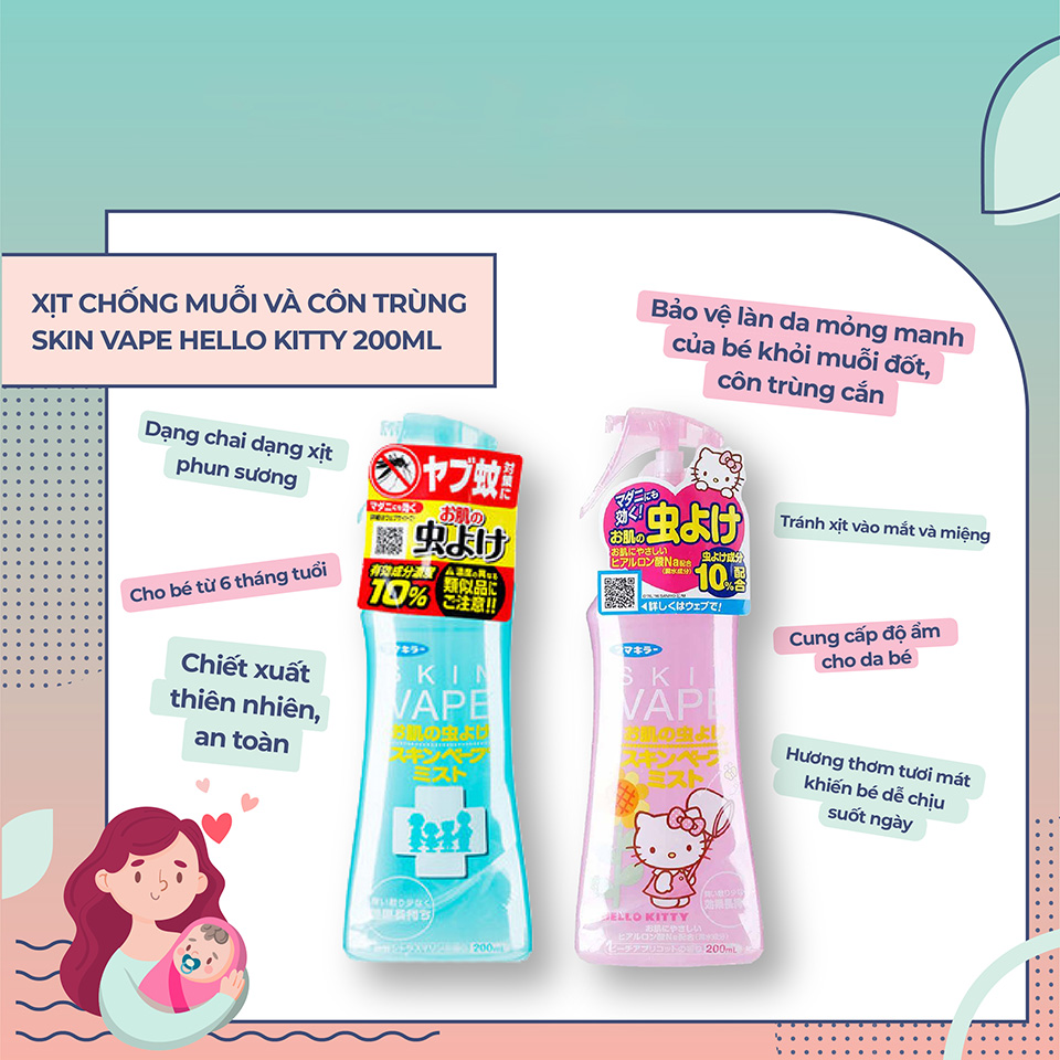 - Chai xịt phun sương, nhẹ nhàng, tiện dụng bảo vệ da bé khỏi muỗi và các loài côn trùng đốt. Thành phần các chất hữu hiệu, có tác dụng trong thời gian dài. Sản phẩm không chứa các chất tẩm…