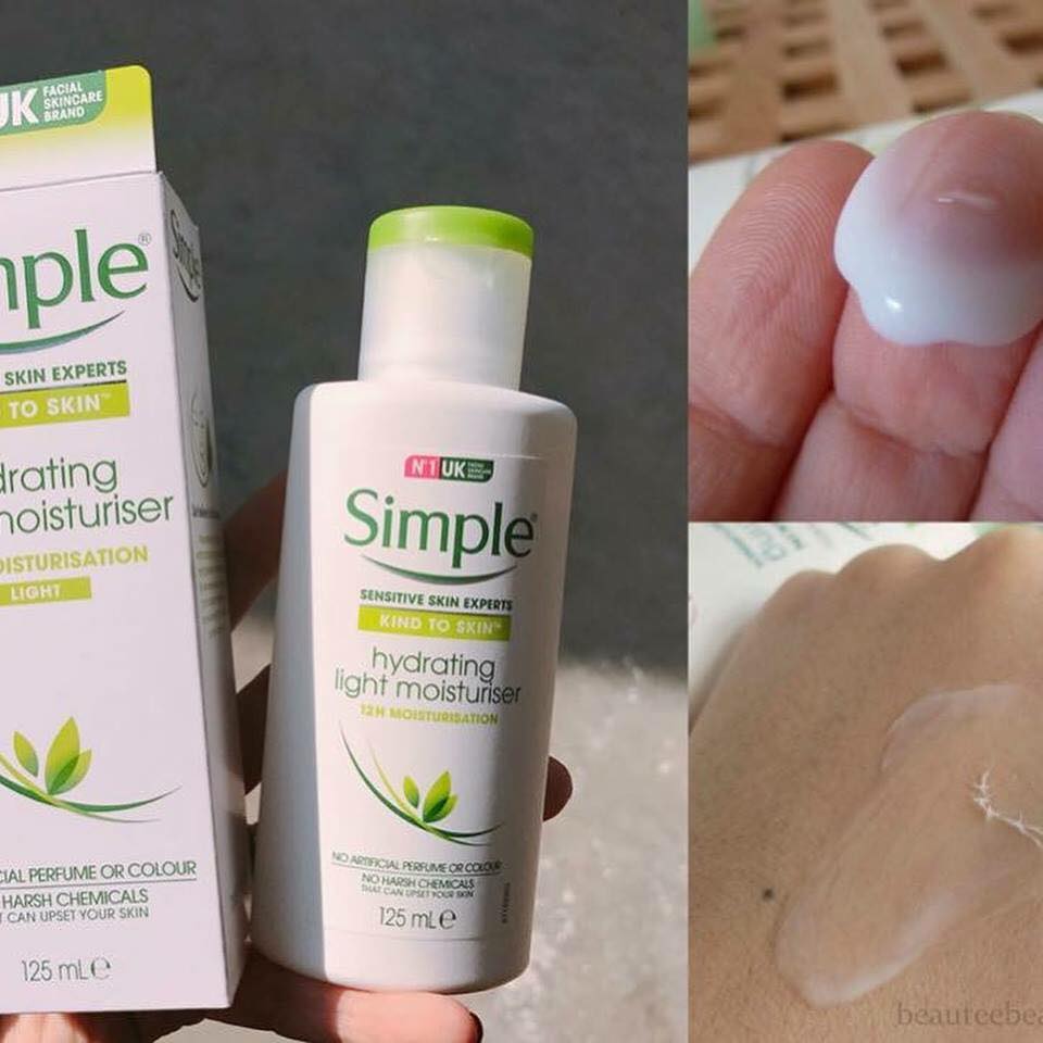 – Kem dưỡng ẩm Simple Kind To Skin giảm thiểu tình trạng lên mụn, thích hợp với ngay cả những bạn bị mụn ẩn.