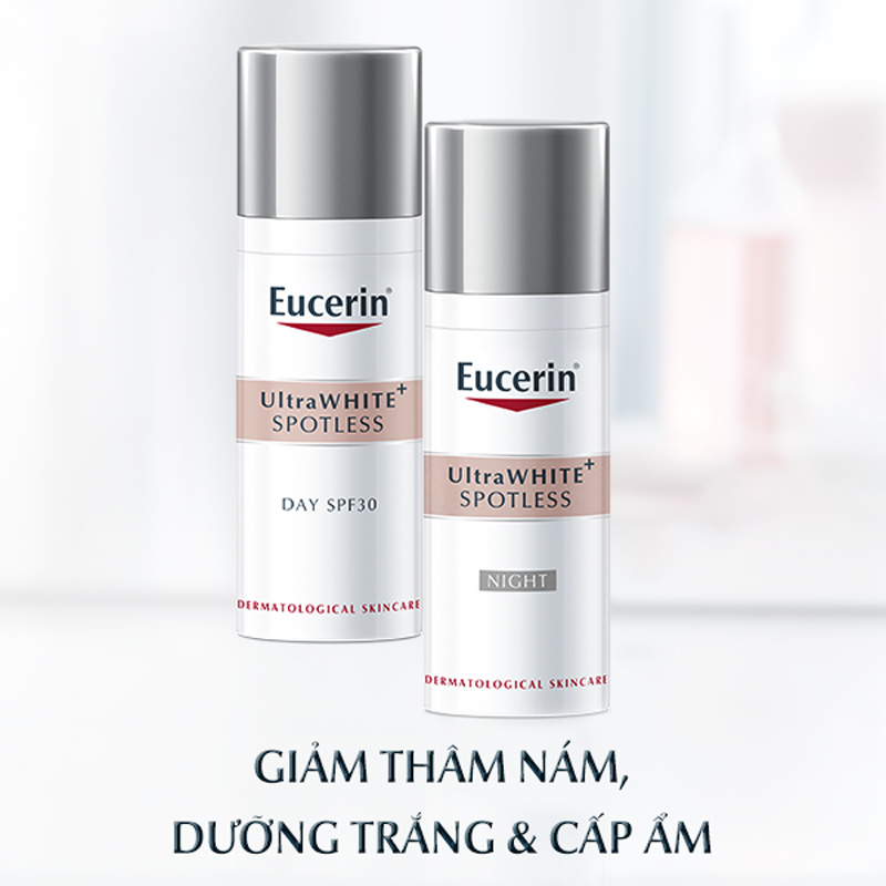 UltraWHITE+ SPOTLESS là dòng sản phẩm dưỡng sáng da, mờ thâm nám mới từ thương hiệu dược mỹ phẩm Eucerin, được hãng cải tiến thành công từ dòng White Theraphy trước đó. UltraWHITE+ SPOTLESS mang nhiều ưu điểm vượt trội hơn nhờ thành phần chính là Thiamidol – hoạt chất được cấp bằng sáng chế độc quyền của Eucerin, giúp ức chế sự sản sinh melanin ngay tại gốc tế bào sắc tố. Từ đó, giúp giảm thâm nám hiệu quả và ngăn ngừa chúng quay trở lại.