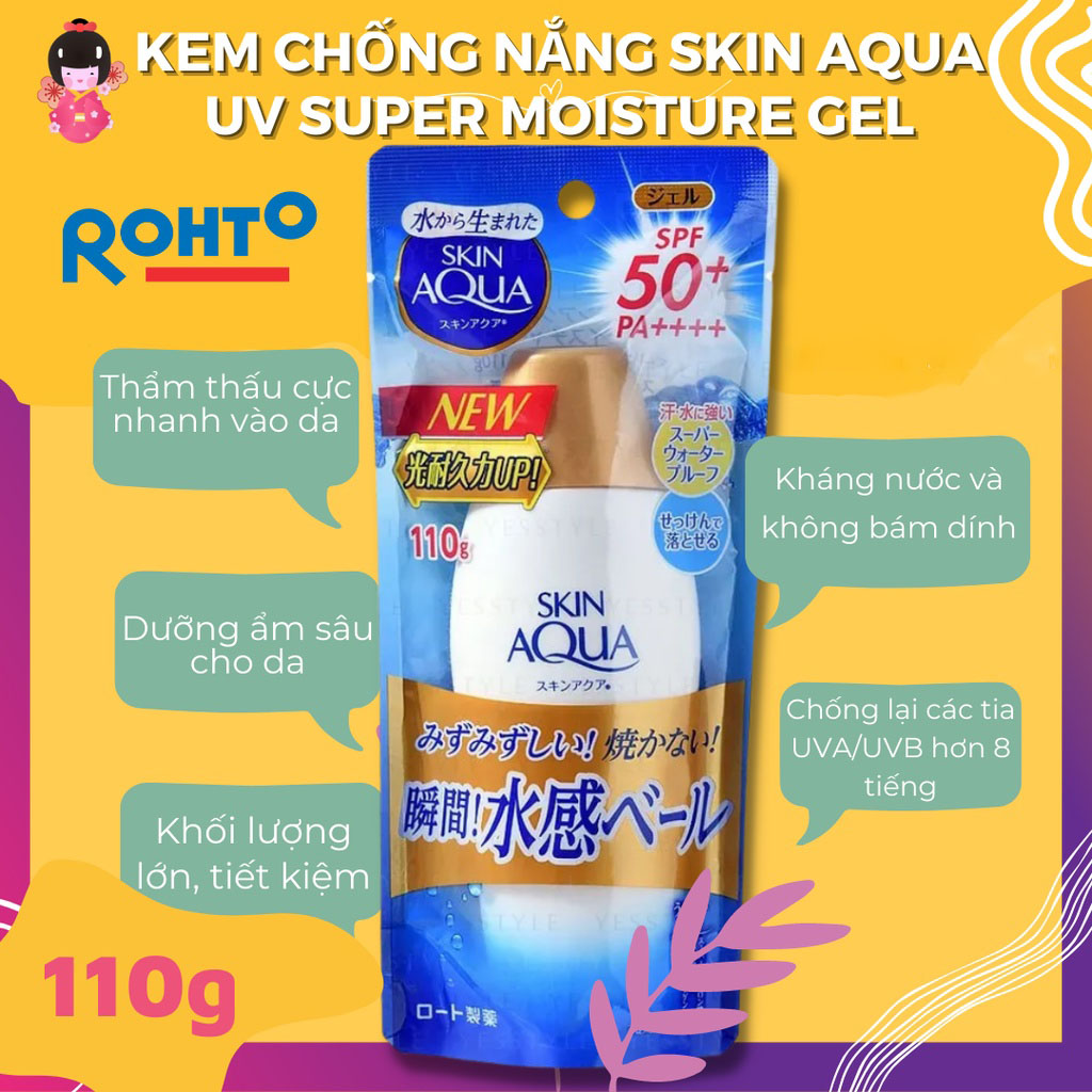 Kem chống nắng Nhật Skin Aqua UV Super Moisture Essence SPF 50+ PA++++ 110g