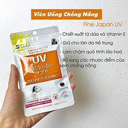 - Người không muốn có cảm giác nhờn dính khó chịu như dùng kem, thì lựa chọn cho mình Viên uống chống nắng UV Fine của Nhật Bản là lựa chọn lý tưởng nhất. Bảo vệ da trước tia UV từ bên trong cơ thể vô cùng tiện lợi, an toàn và mang nhiều tính năng ưu việt nên được hàng triệu cô gái tin dùng.