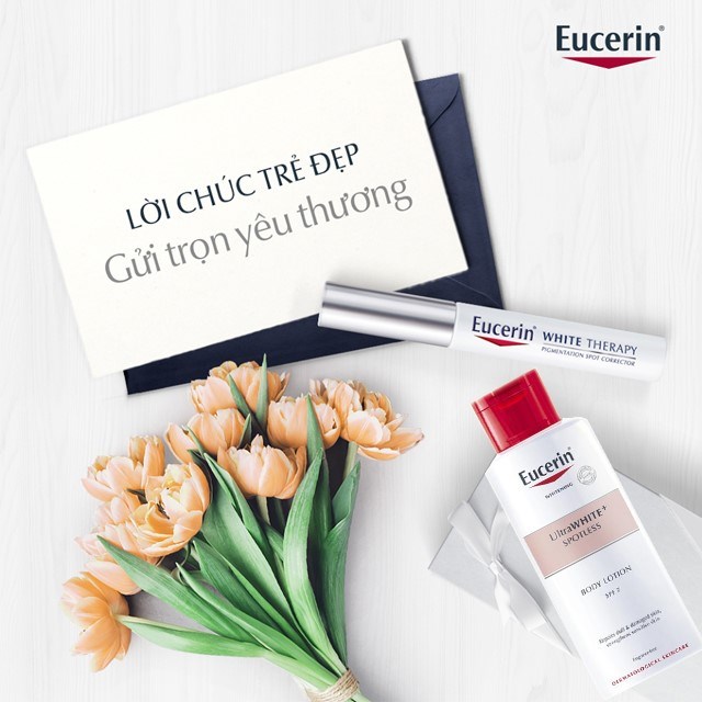 Bạn đang tự ti vì làn da cơ thể thâm sạm, xỉn màu, không được tươi sáng mịn màng nhưng dùng nhiều sản phẩm chăm sóc da mà vẫn không thấy hiệu quả? Thấu hiểu được nhu cầu dưỡng sáng da body của phái đẹp, Ansan xin giới thiệu đến các bạn một giải pháp đến từ nhãn hàng dược mỹ phẩm Eucerin nổi tiếng của Đức - Sữa dưỡng thể Eucerin Whitening Ultra White+ Spotless Body Lotion SPF 7.