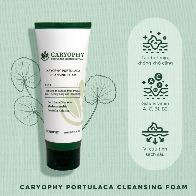 Sữa Rửa Mặt Cho Da Mụn CARYOPHY 150ml Portulaca Cleansing Foam