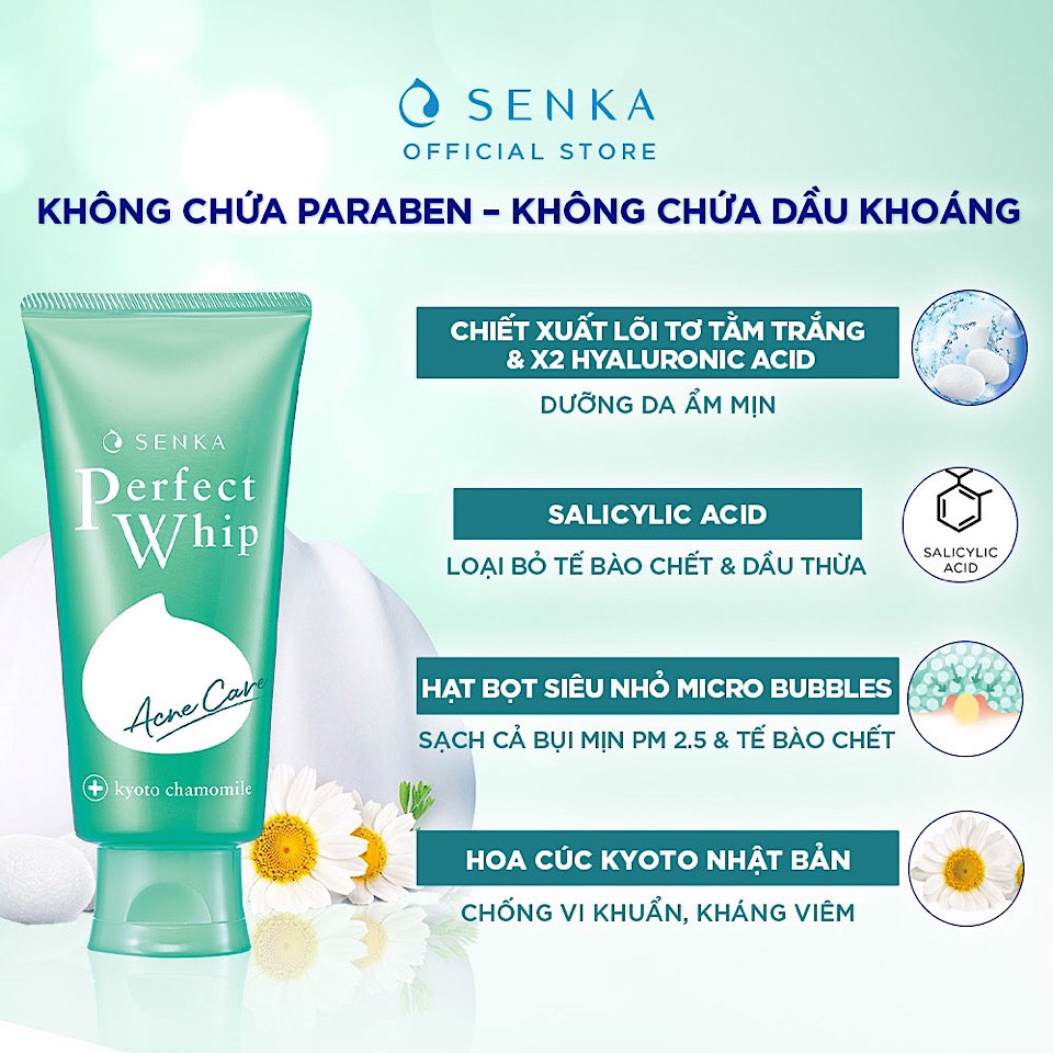 Để sở hữu được một làn da trắng hồng, mịn màng, các chị em cần phải có một quá trình chăm sóc da cẩn thận và tỉ mỉ. Trong đó, sử dụng sữa rửa mặt trị có thể giúp loại bỏ các bụi bẩn trên da, hạn chế bít lỗ chân lông và ngăn ngừa tình trạng nổi trên da hiệu qu.ả. Với những tác dụng vượt trội của Sửa Rữa Mặt Dành Cho Da M.ụn Senka Perfect Whip Acne Care là món quà mà hãng Senka dành tặng cho cô nàng da đây.