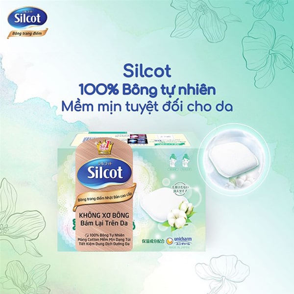 - Công nghệ hiện đại: Bông tẩy trang Unicharm Silcot được sản xuất theo công nghệ tiên tiến, được các chuyên gia kiểm soát nghiêm ngặt về chất lượng thành phẩm đầu vào và đầu ra. Sản phẩm đảm bảo tuyệt đối an toàn cho làn da người sử dụng, đồng thời rất thân thiện với môi trường.