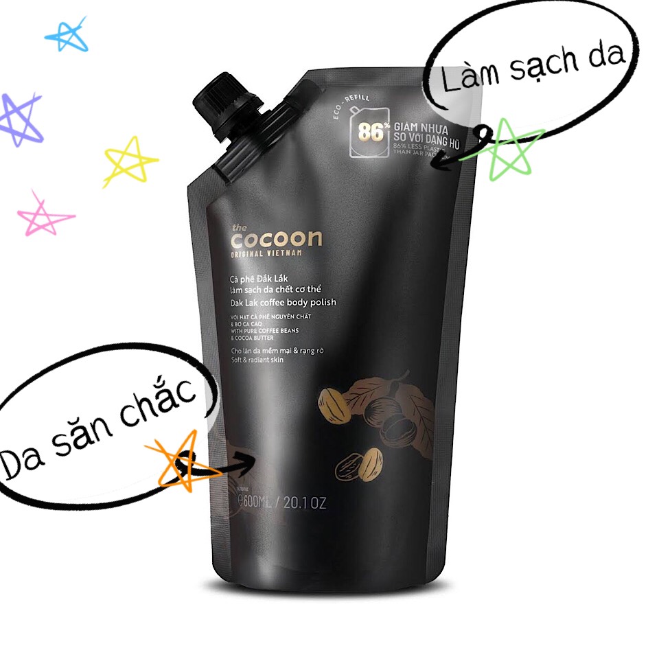 Sản phẩm là sự kết hợp giữa hạt cà phê Đắk Lắk nguyên chất xay nhuyễn, hòa quyện cùng bơ cacao Tiền Giang giúp loại bỏ tế bào ch,,ết trên cơ thể hi.ệu quả, làm đều màu da, mang lại năng lượng, giúp da trở nên mềm mại và rạng rỡ.