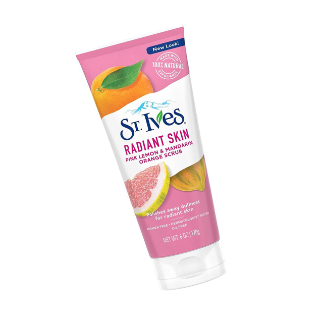 - ST.IVES Radiant Skin Pink Lemon & Mandarin Orange Scrub - chiết xuất từ quả chanh hồng và cam mang một mùi hương sảng khoái từ trái cây thuần túy đánh thức các giác quan, dưỡng ẩm và cân bằng lại tông màu da.
