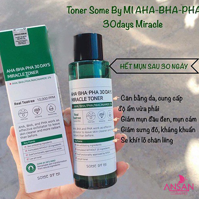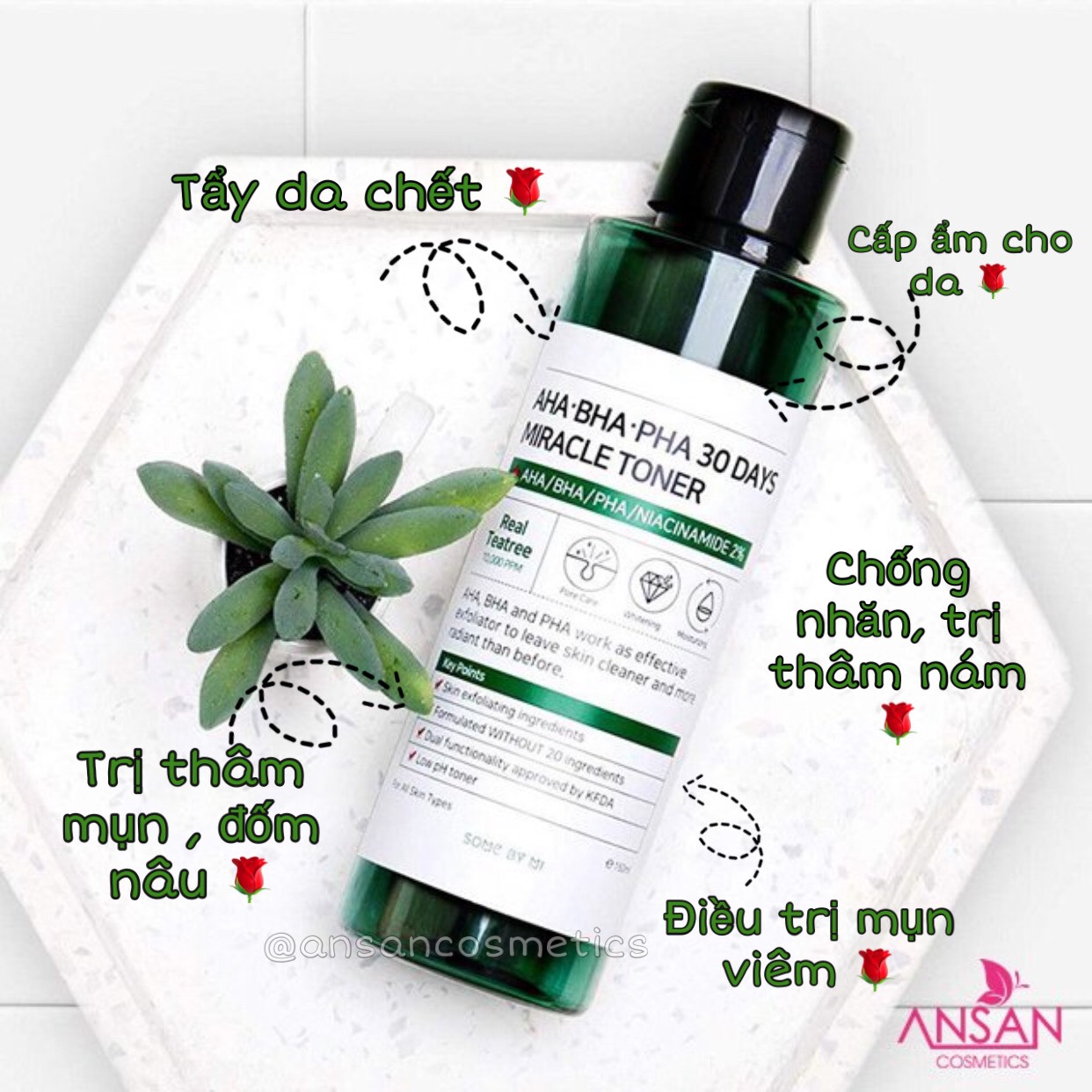 Mụn luôn là nỗi ám ảnh không chỉ của riêng ai. Để có được làn da mịn màng, sạch bóng, không mụn không phải chuyện dễ dàng. Một trong những sản phẩm nổi bật có tác dụng trị mụn thần kì đang được sự quan tâm của đông đảo các bạn trẻ là nước hoa hồng AHA-BHA-PHA 30 Days Miracle Toner.