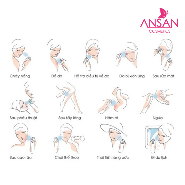 - Nước xịt khoáng Avène mang lại cảm giác dễ chịu thư thái kể cả cho làn da nhạy cảm, da đang bị kích ứng, dị ứng, ngứa ,chàm, viêm da, cháy nắng…