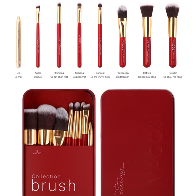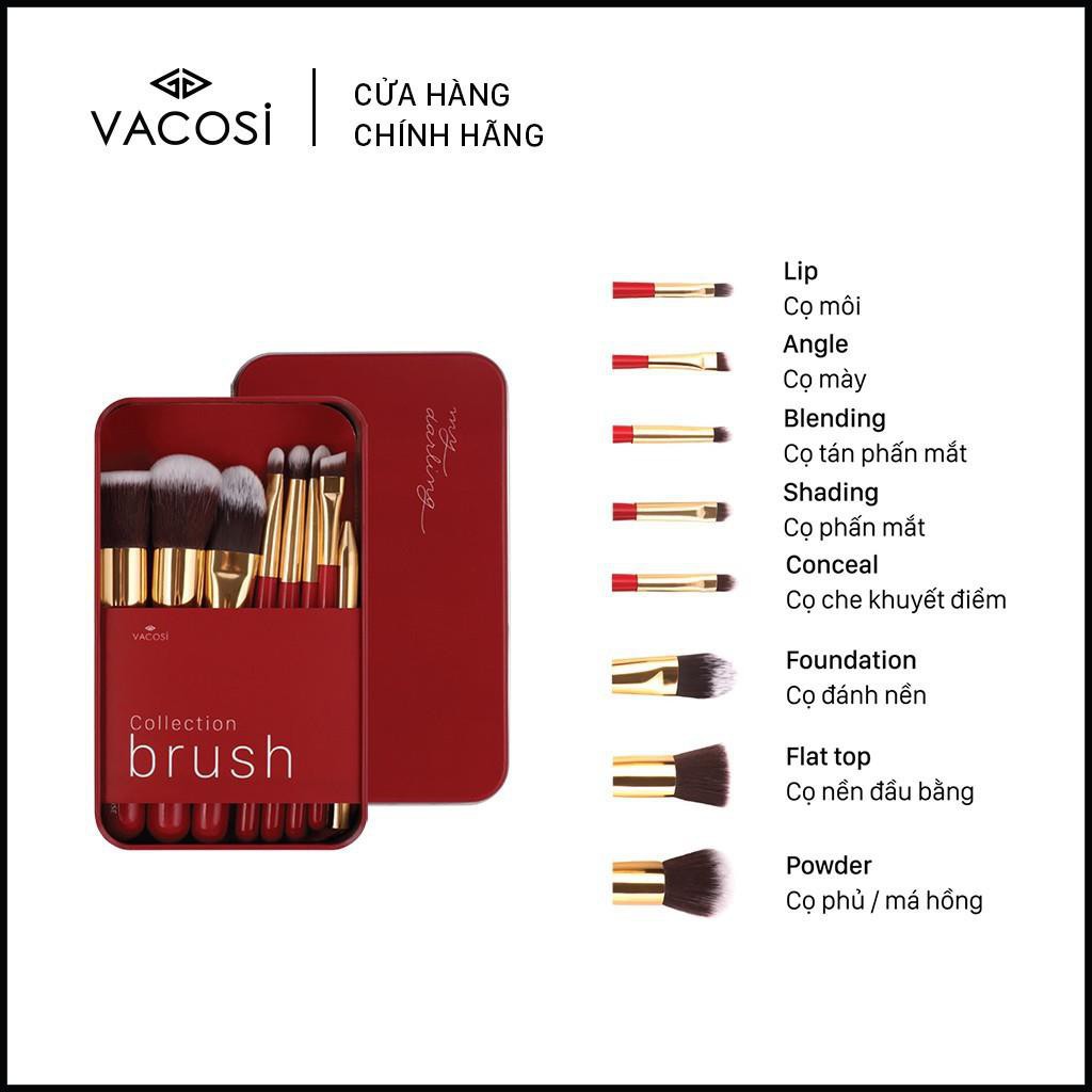 Bộ cọ VACOSI, My darling được thiết kế nhỏ gọn và tiện lợi. Với hộp chứa cọ bằng sắt giúp bảo quản cọ tốt hơn.
