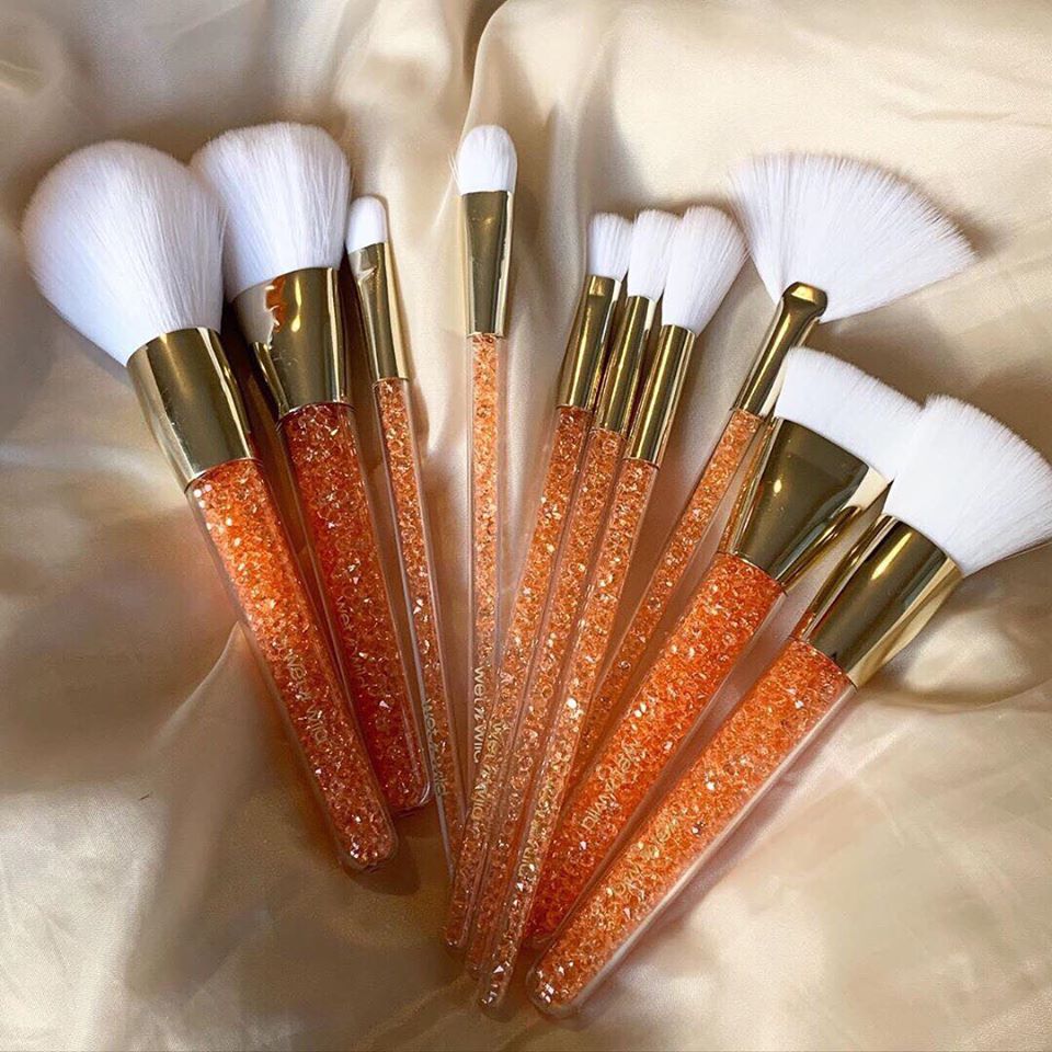 - Bộ gồm 10 cây cọ cho mặt và mắt có thể dùng được với phấn, kem hoặc chất lỏng.