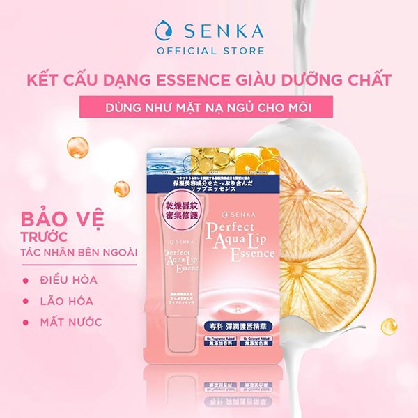 Để đôi môi trở nên căng mịn hơn, các chị em đừng bỏ qua dòng son dưỡng môi tuyệt đỉnh của thương hiệu SenkaSon Dưỡng Cấp Ẩm Ban Đêm Senka Perfect Aqua Lip Essence là một trong những dòng son nổi bật hỗ trợ các chị em giải quyết đến 5 vấn đề của đôi môi như nếp nhăn, khô tróc, sần sùi, nứt nẻ,... mang lại một đôi môi căng bóng, mềm mịn hơn.