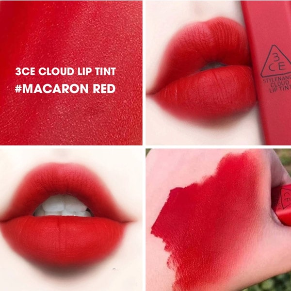 Son Kem 3CE Cloud Lip Tint Màu Macaron Red Đỏ Thuần Ánh Nâu