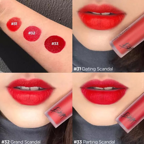 - Màu 33 - Parting Scandal: Sắc đỏ nâu cực kỳ trendy và dễ sử dụng. Đặc biệt, Parting Scandal lên môi một số bạn sẽ có ánh tím, nhưng không đáng kể nên chúng mình cứ yên tâm lựa chọn nhé! Tuy nhiên, màu son lên môi khá đậm nên nếu dùng hằng ngày thì đánh lòng môi sẽ xinh hơn đó.