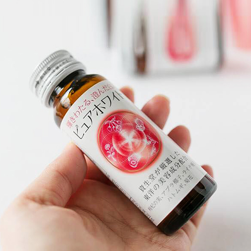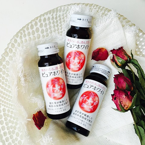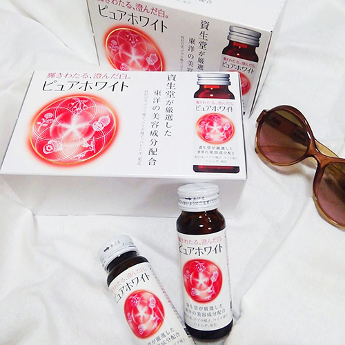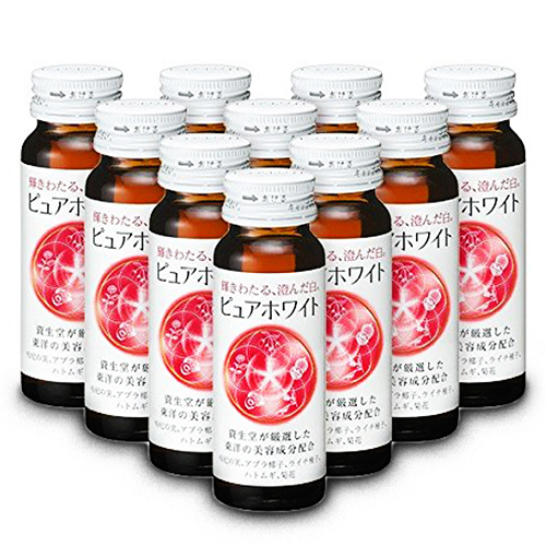 - Nước uống Shiseido Pure White công dụng làm trắng da tự nhiên với thành phần vitamin C 1000mg. Trị tàn nhang, xua tan vết nám.