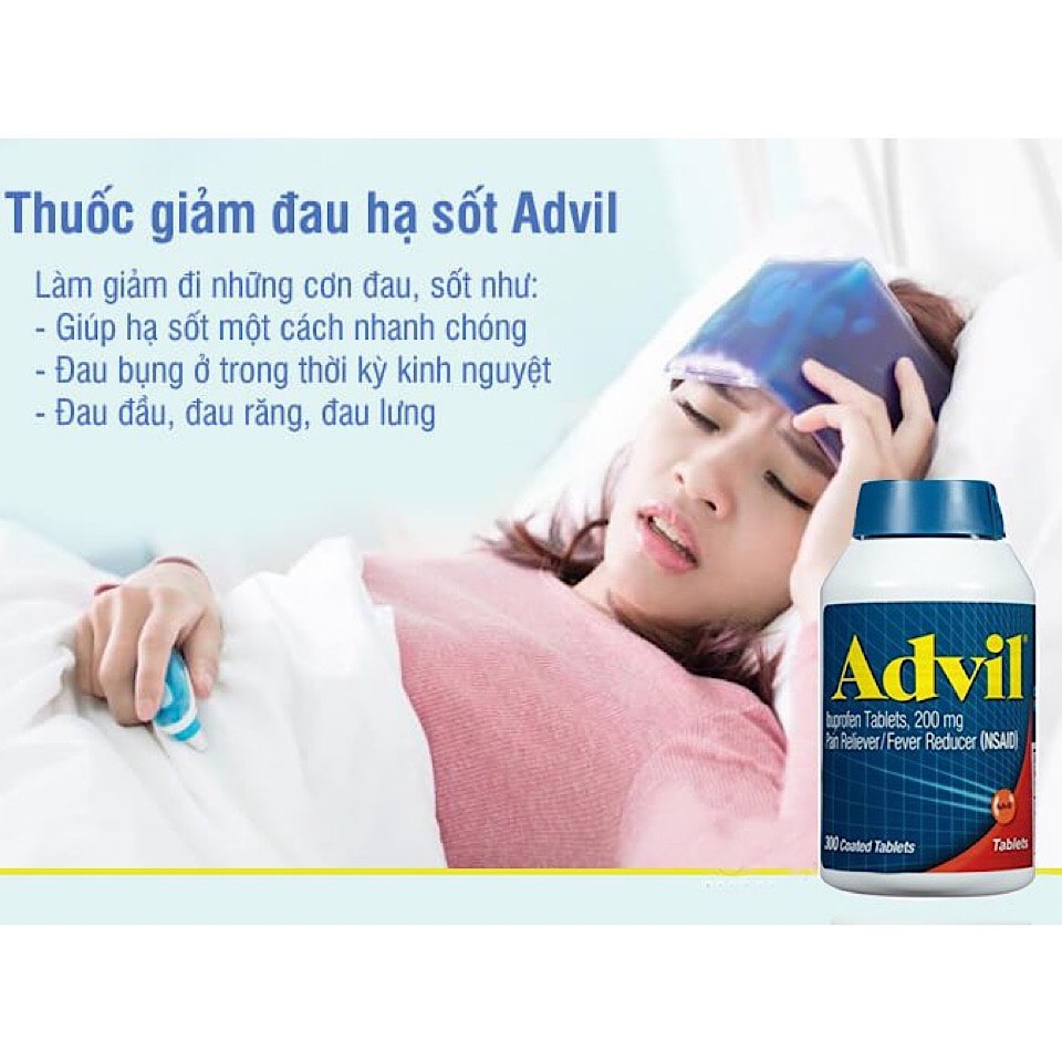 – Viên Uống Advil Ibuprofen Tablets 200mg là sản phẩm được nghiên cứu trong thời gian dài với các thành phần chọn lọc để điều trị nhanh chóng khi cơn đau xuất hiện. Với tác dụng chính làm giảm đau, hạ sốt hữu hiệu, đem lại cho bạn tinh thần làm việc hiệu quả hơn. Những cơn đau đầu, nhức khớp, đau răng, cảm cúm thông thường… nay không còn là vấn đề đáng lo lắng.