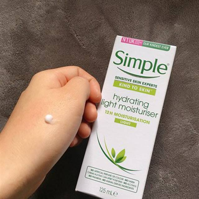 – Kem dưỡng ẩm Simple Kind To Skin giảm thiểu tình trạng lên mụn, thích hợp với ngay cả những bạn bị mụn ẩn.