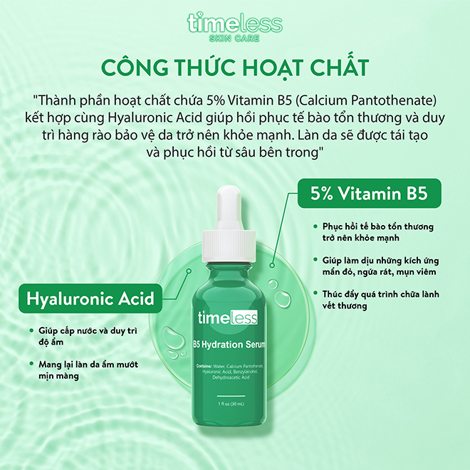 - Timeless Vitamin B5 Serum cung cấp độ ẩm cho da, giúp da trở nên mềm mại hơn.