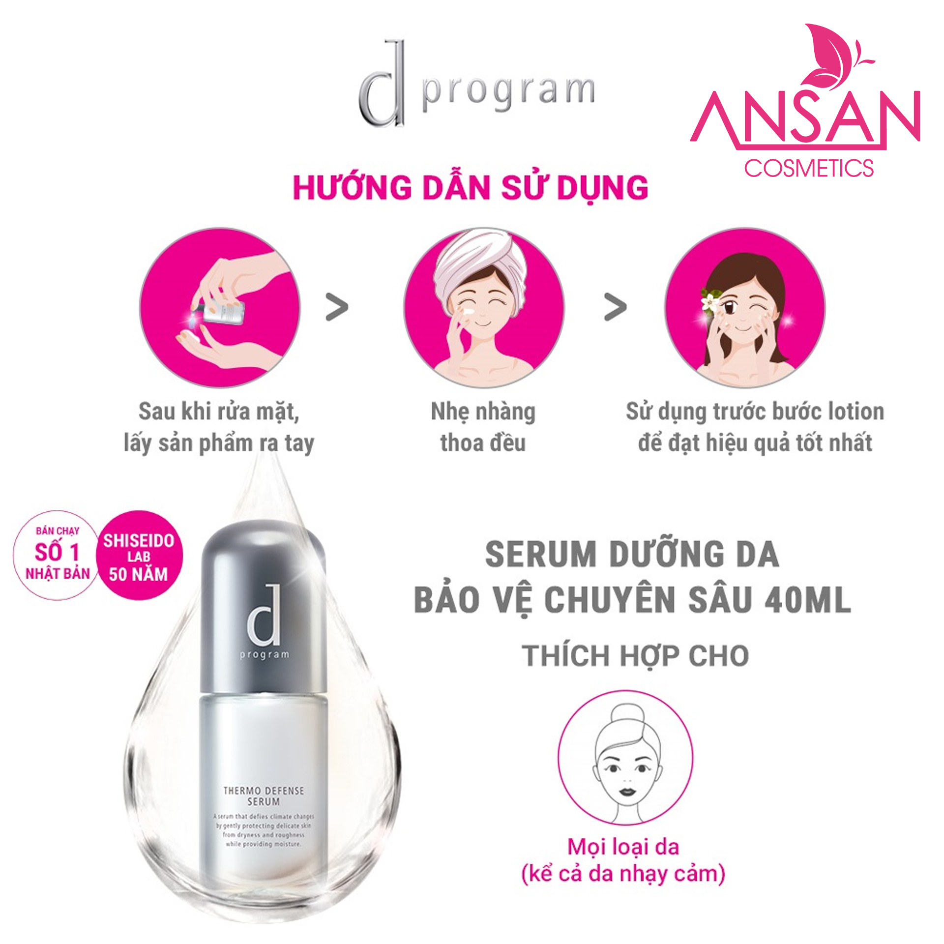 Sản phẩm serum dưỡng da bảo vệ chuyên sâu DPROGRAM được sản xuất tại Nhật là sản phẩm duy nhất trên thị trường nghiên cứu bảo vệ da trước thay đổi nhiệt độ từ môi trường. Sản phẩm được sử dụng ở bước...