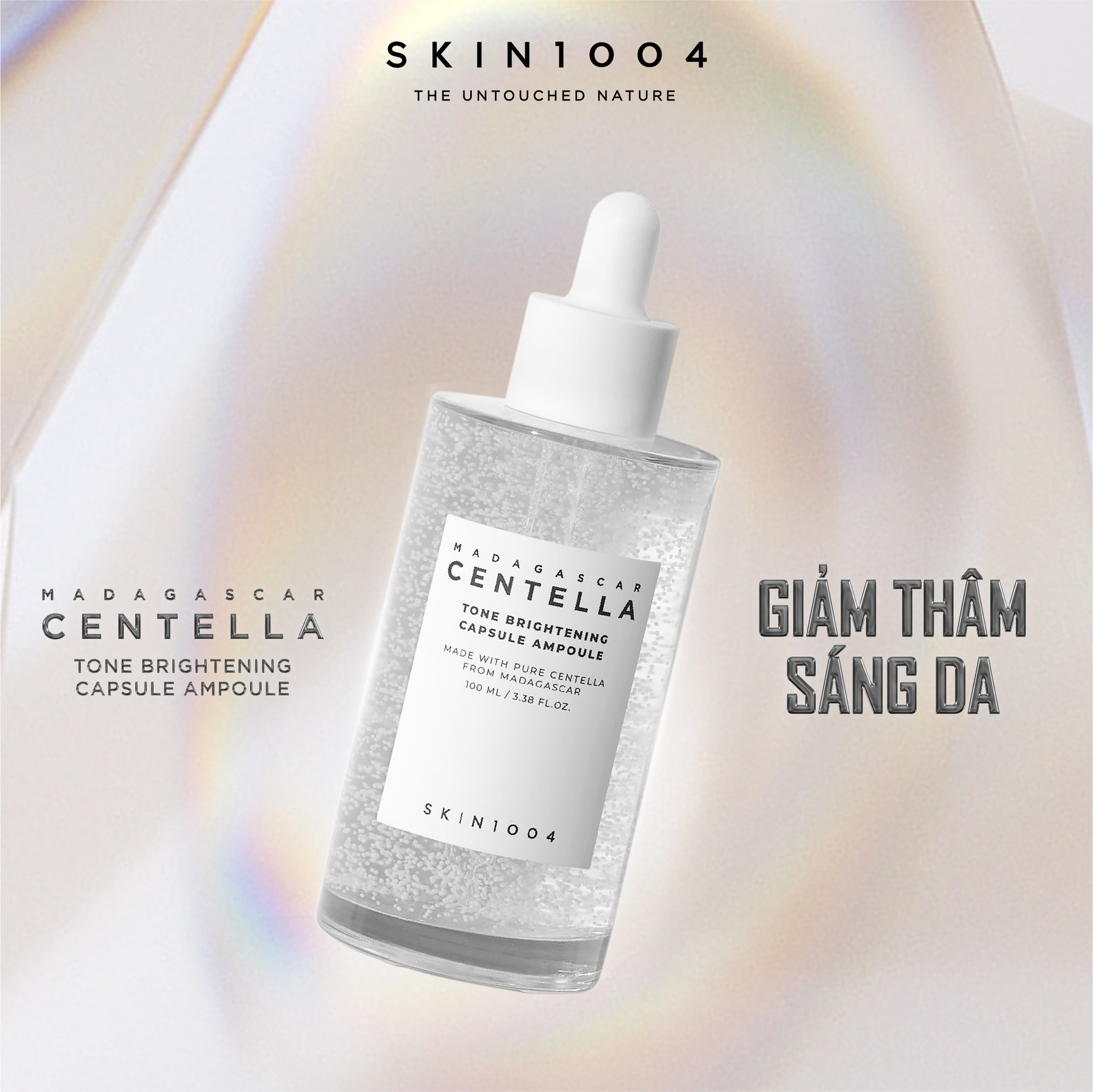 Tinh Chất Dưỡng Trắng Da Chuyên Sâu Skin1004 Tone Brightening Capture Ampoule 100ml là dòng tinh chất dưỡng da thuộc thương hiệu Skin1004 đến từ Hàn Quốc. Với công thức thành phần được cấp bằng sáng chế Madewhite™ chiết xuất từ rau má cùng với phức hợp dưỡng trắng gấp 3 lần bao gồm Niacinamide, Axit tranexamic và 3-o-Ethyl Ascorbic Acid giúp da trắng sáng đều màu, đồng thời hỗ trợ làm dịu và giảm kích ứng trên làn da nhạy cảm.