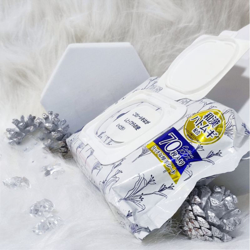 Khăn Ướt Tẩy Trang Wasosen Hatomugi Từ Hạt Ý Dĩ & Lá Phỉ 70 Miếng