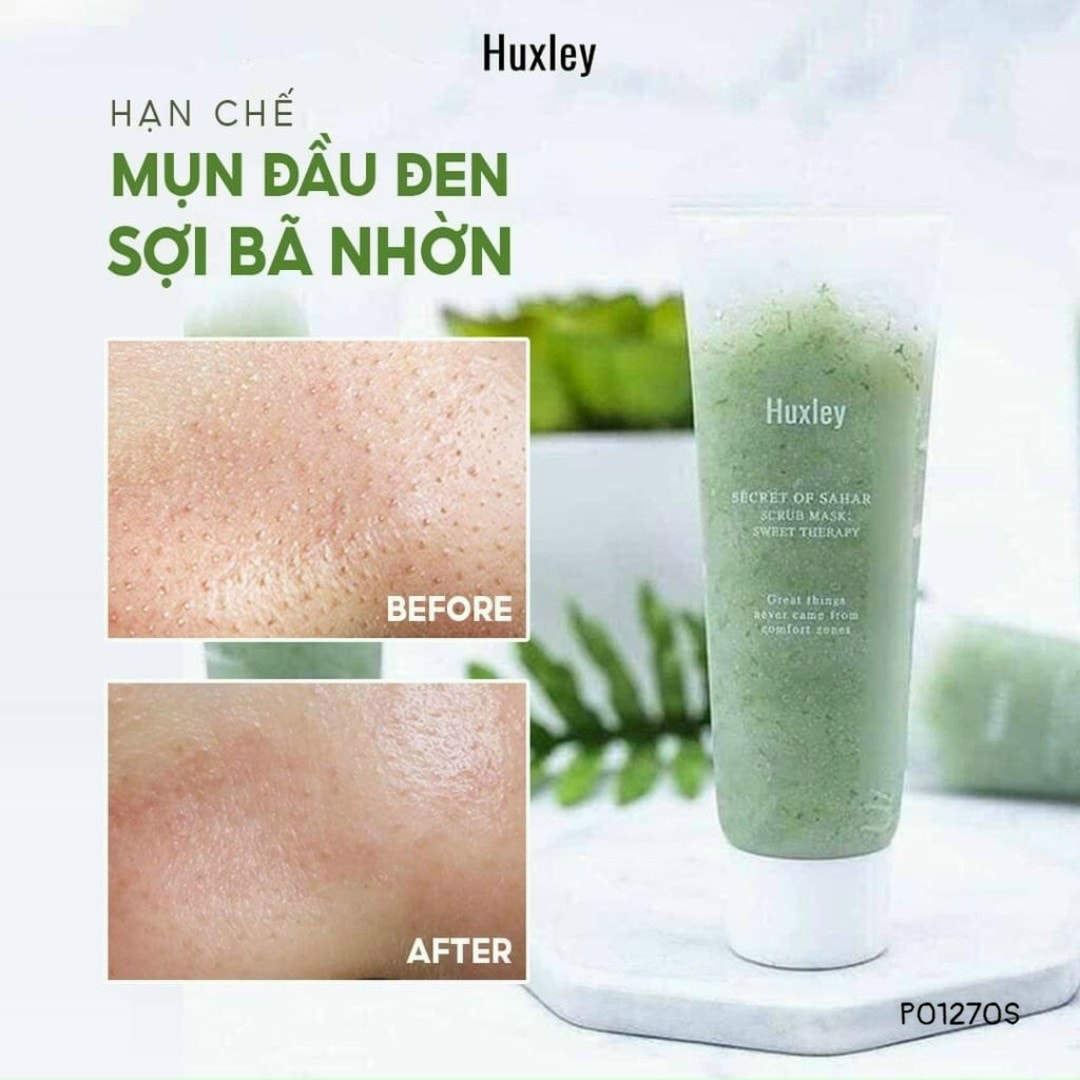 Mặt nạ tẩy da chết Huxley sẽ giúp lấy đi bụi bẩn và các tế bào chết trên da với các thành phần tẩy da chết từ thiên nhiên như đường, vỏ hạt óc chó nghiền nhuyễn… mang lại làn da mịn màng, rạng rỡ mà không gây kích ứng hay làm khô căng da. Ngoài ra, sản phẩm chứa chiết xuất từ cây xương rồng Sahara tươi và tinh dầu xương rồng ép cơ tay 100%, giàu Linoleic Acid và Vitamin E có khả năng cung cấp độ ẩm, dưỡng ẩm cho làn da thêm mềm mịn, đồng thời chống oxy hóa, ngăn ngừa các dấu hiệu lão hóa da.