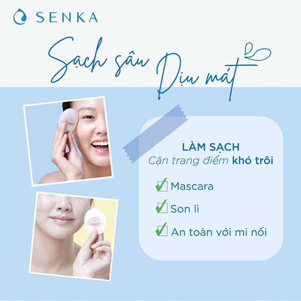 - Công thức mỏng nhẹ độc đáo kết hợp 2 lớp từ nước tẩy trang micellar làm sạch sâu lớp trang điểm đậm cùng Sữa tẩy trang có thanh phần chiết xuất đậu nành Nhật giúp nuôi dưỡng, cấp ẩm cho làn da sạch thoáng, mịn màng, đàn hồi và rạng rỡ.