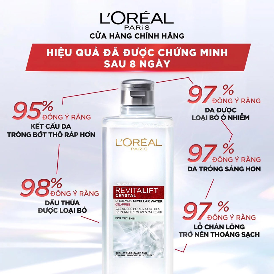 Nước tẩy trang và làm sạch da L’oreal Revitalift crystal Purifying Micellar water