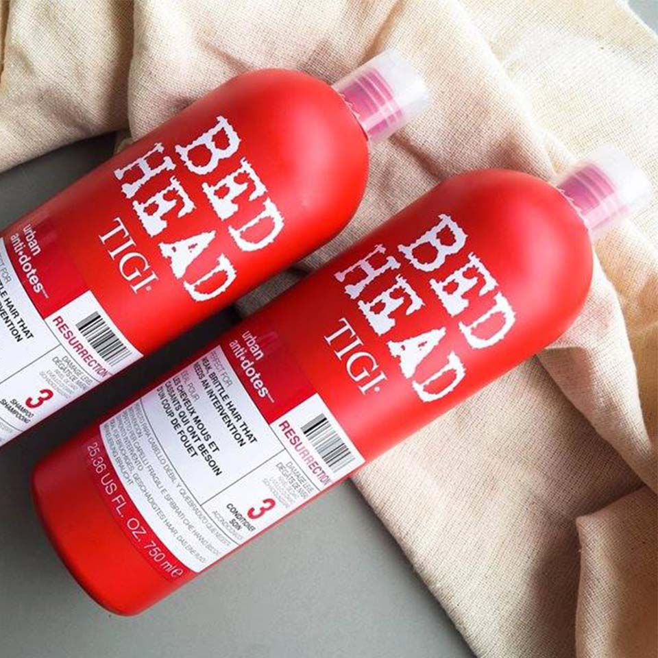 Tigi Bed Head đỏ là dòng dầu gội xả dành cho tóc khô xơ hư tổn mức độ 3. Dầu gội xả có chứa phức hợp hạt nano siêu nhỏ (hay còn gọi là hạt silicon siêu nhỏ) bám vào vùng tóc bị hư tổn – Silicon giống như một lớp áo choàng bảo vệ. Loại dầu gội xả này khác với các loại dầu gội chứa Silicon khác là trọng lượng phần tử Silicon và cách thức cách thức chúng bám vào sơi tóc khác nhau. Do vậy, tạo cho tóc cảm giác khỏe khoắn hơn và không gây nặng tóc hay bết dính. Mùi hương của Tigi đỏ cảm nhận lần đầu mở lắp hộp là mùi kẹo hoa quả ngọt ngào, thơm và dễ chịu.