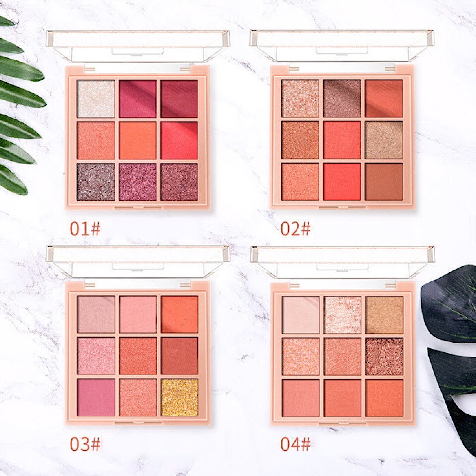 Sản phẩm có 9 ô phấn với 9 màu khác nhau, từ màu lì đến màu nhũ các nàng có thể tha hồ kết hợp để tạo nên nhiều style makeup theo ý thích nè.