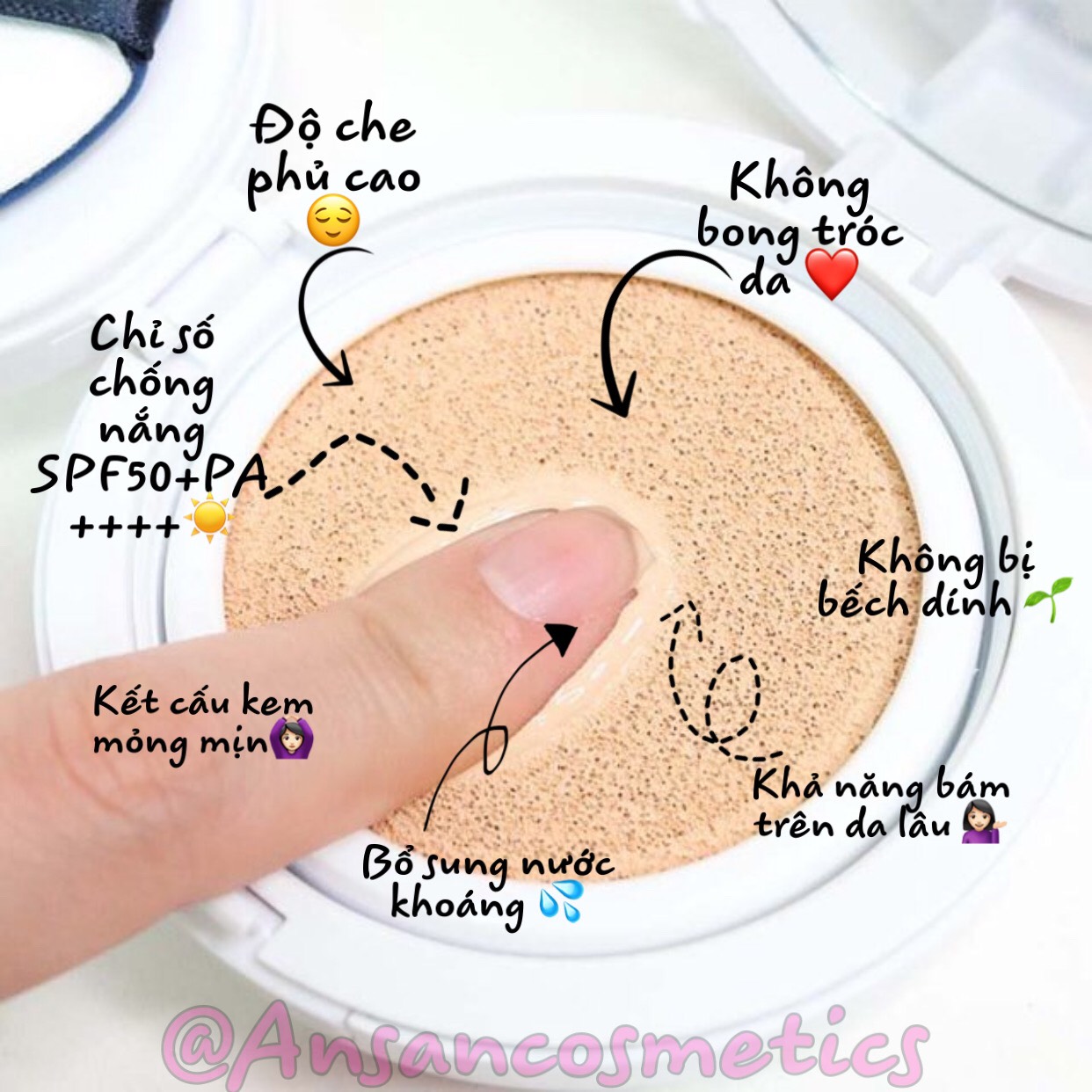 - Lớp đệm khí thấm kem nền cũng đã được cải tiến so với bản cushion cũ với hàng trăm lỗ khí nhỏ hơn, độ đàn hồi cao hơn sẽ khiến việc lấy kem không còn quá khó khăn.