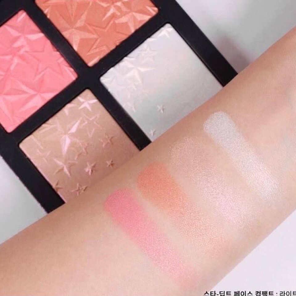 - Bảng phấn gồm 2 ô má hồng, 1 ô tạo khối và 1 ô highlight mỗi ô phấn đều có hình ngôi sao nổi đẹp và ấn tượng.
