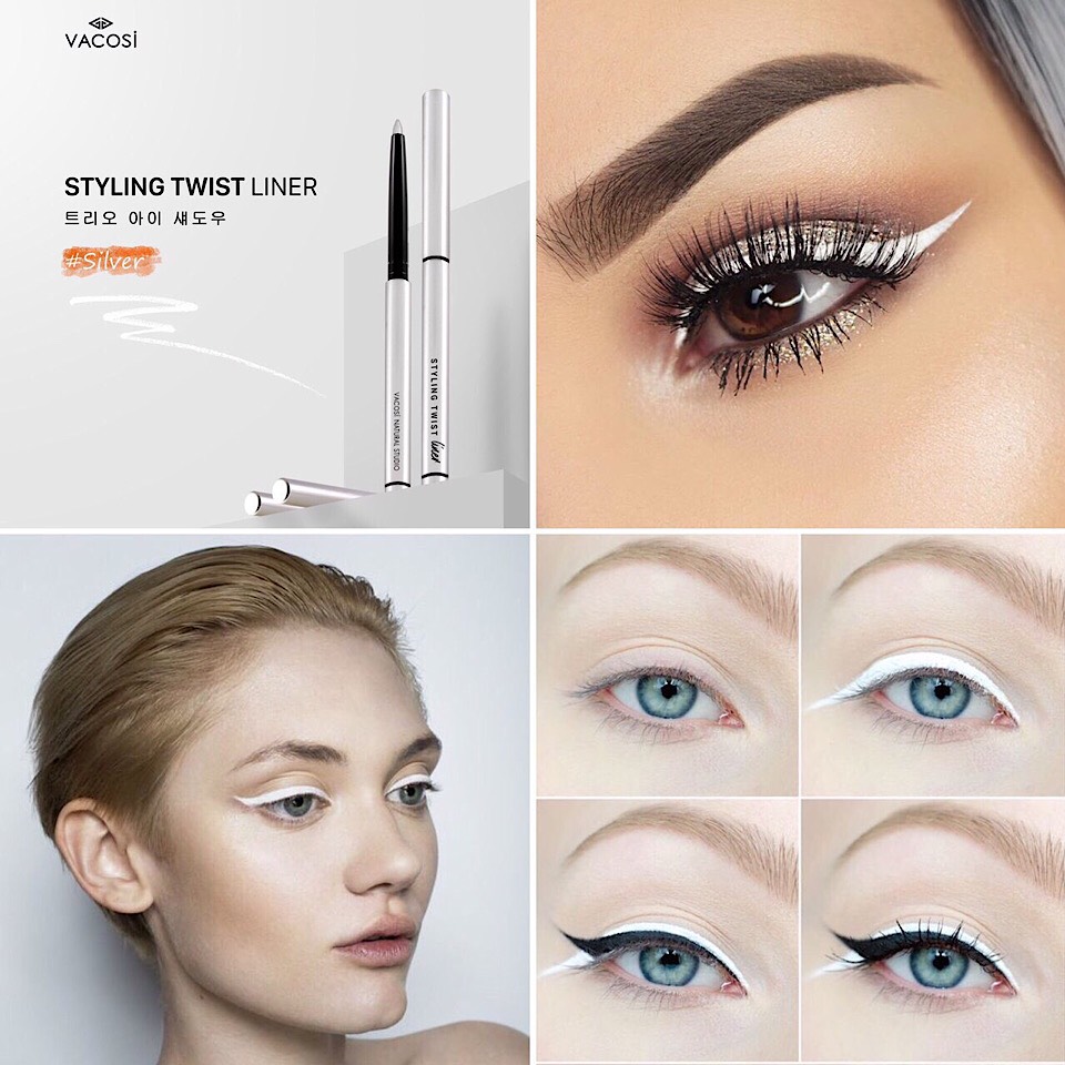 Khác với Eyeliner đen huyền truyền thống cho đôi mắt sâu thẳm thì đường kẻ mắt với gam màu trắng bạc đánh thức sự long lanh và hiệu ứng to tròn, giúp phái đẹp dễ dàng nổi bật giữa đám đông.